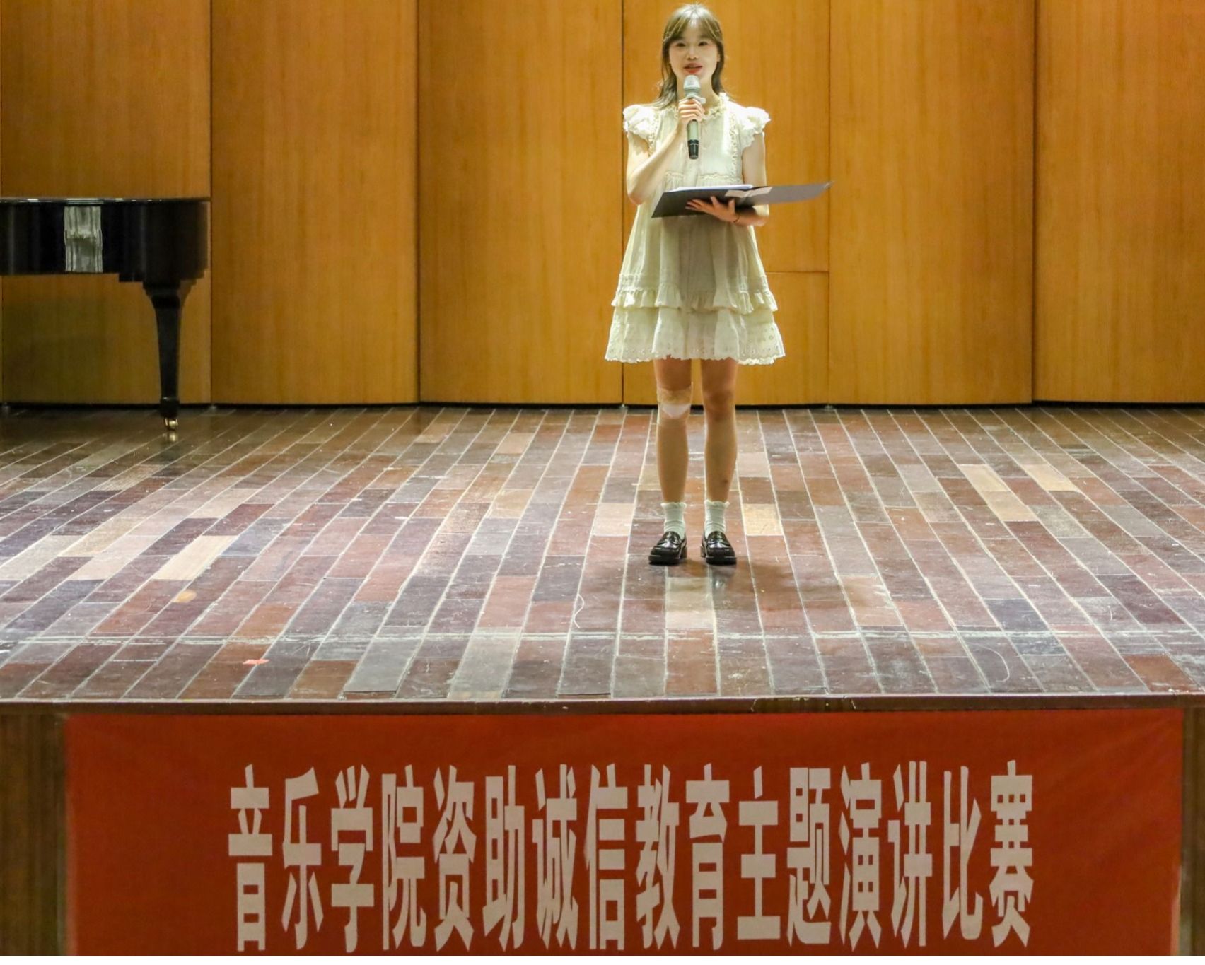 在音乐厅开展“诚信教育”主题演讲比赛,来自不同年级的11名选手齐聚一堂,各展风采。学院教师卢星、孙文和刘霜霜担任比赛评审。