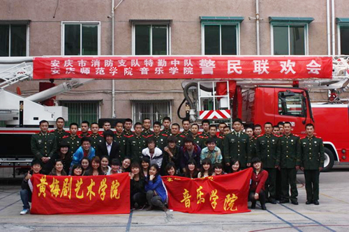黄梅剧艺术学院文艺演出队一行40余人赴安庆市消防特勤中队驻地进行“警民联欢”活动,这是该院优秀文艺“四进” 活动( 进部队、进社区、进农村、进中小学)的组成部分,也是体现该院特色的传统活动之一。
