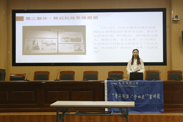 开展党史学习教育专题宣讲活动,校“青年新声˙学‘四史’”宣讲团为4hu
