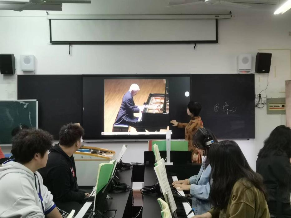 甘琴副教授首先从作者贝多芬的生平以及《悲怆奏鸣曲》的创作背景着手介绍,紧接着结合多媒体对《悲怆奏鸣曲》的一、二、三乐章进行了聆听与赏析。在赏析每一乐章的同时,甘琴副教授还对演奏技巧做了相应的讲解与亲身示范,并邀请了台下的学生上台演奏并进行针对性的指导。甘琴老师用她亲切生动的授课语言、充沛的情感表达以及流畅娴熟的演奏技能,带给我们一场视听盛宴。现场互动环节,针对学生的提问,甘琴副教授一一作了精彩解答,同学们受益匪浅,不时送上阵阵热烈的掌声表示认同与称赞。