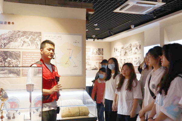 在陈列馆内,讲解员从黄镇将军的青年时期、中年时期、晚年时期三个人生阶段依次讲解,带领班级学生了解他的生平事迹以及革命壮举:“自幼刻苦学习,1925年考入上海美术专科学校”“1932年加入中国共产党”“参与第四、第五反围剿和长征”“建国后,任驻匈利亚、印度尼西亚、法国等大使”“任外交部副部长”……在讲解员的一声声介绍中,同学们对黄镇将军和革命历史有了更深的了解。黄镇将军将自己的一生毫无保留地奉献给人民与革命,奉献给人类和平与进步事业的崇高精神,永远激励着一代又一代后来人,不断进取、不断开拓,去创造祖国更加繁荣昌盛的未来,去创造人类永久和平与进步发展的事业。