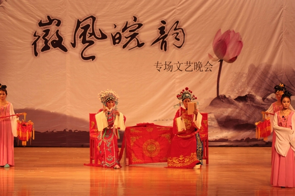 艺术团对此次演出高度重视,从演员安排和节目筛选都做了充足的准备与精心的安排,选送了富有代表性的黄梅戏经典选段如:《天仙配·鹊桥》、《戏牡丹》、《女驸马·洞房》等,还特别安排了在传统黄梅戏基础上改编而成的黄梅剧目《公堂提审》。整场晚会由凸显安徽地方特色的黄梅戏贯穿全场,让观众深切感受到一股“徽风皖韵”的山野之风。
