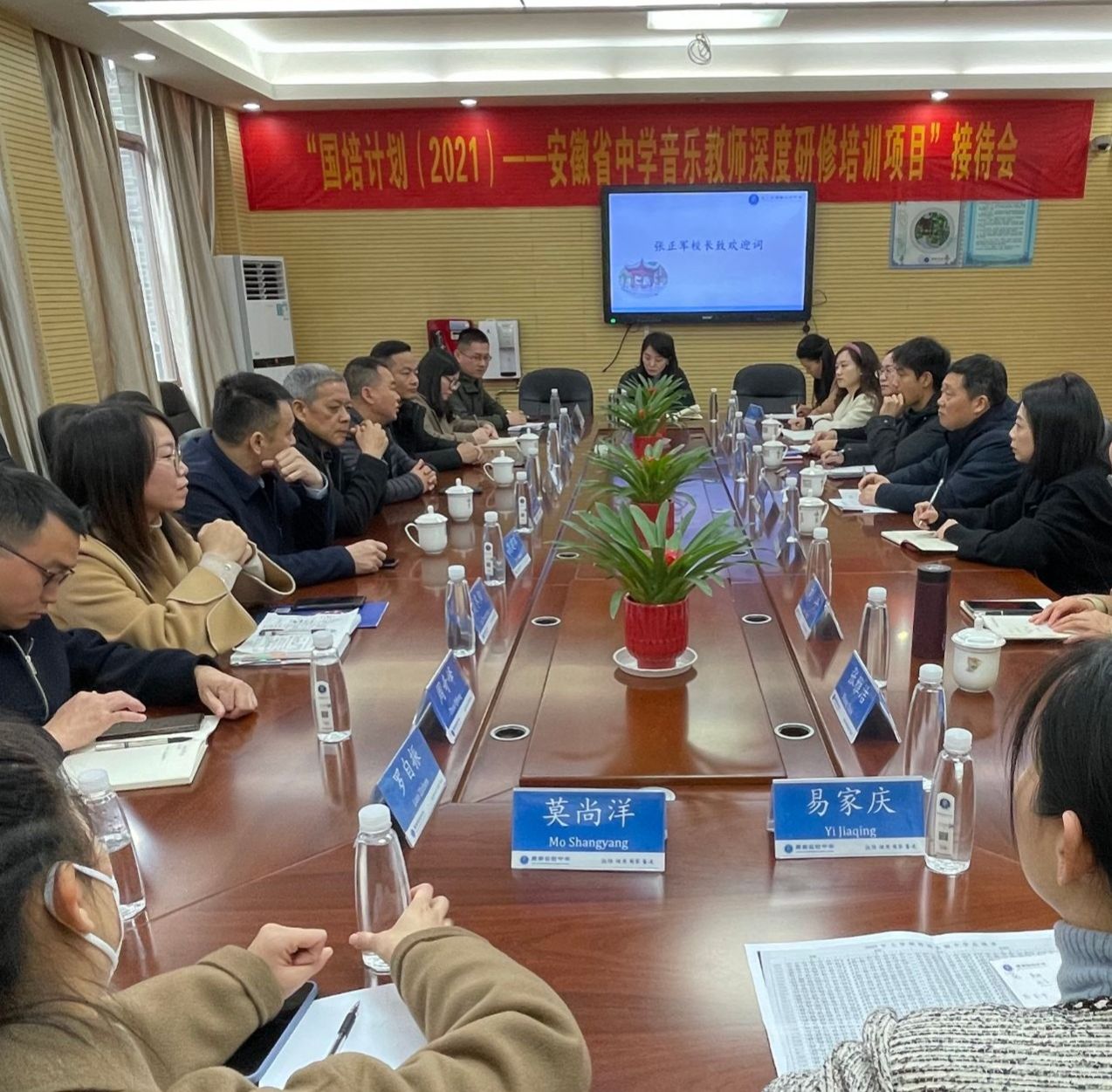 的到来表示欢迎,教师发展处主任陈芳介绍了湖师大附小的办学规模、音乐教研情况,并进行了跟岗研修导师的分配。