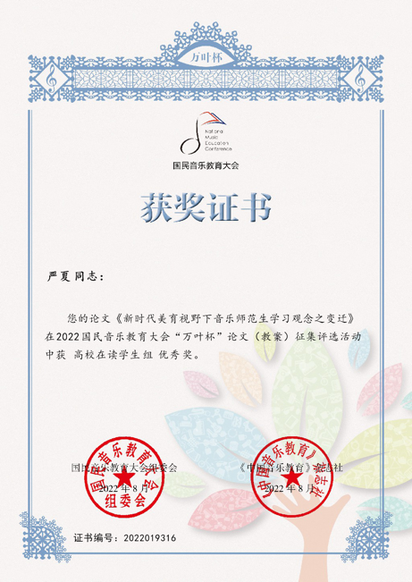 8月19日,中国音乐教育杂志社公布了2022国民音乐教育大会“万叶杯”论文(教案)征集评选活动获奖名单,4hu