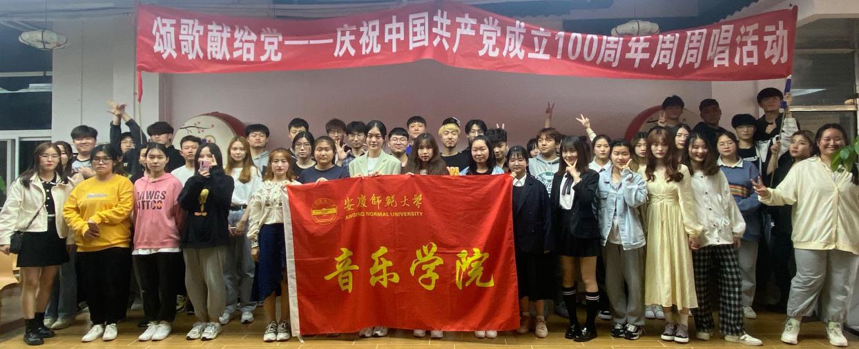 特举办“颂歌献给党——庆祝中国共产党成立100周年百首红歌周周唱”活动。学院党委副书记肖之进告诉学生记者,此次活动是学院“颂歌献给党——庆祝中国共产党成立100周年”系列活动中的一项,在7月1日前10周,每周由1-2个班级组织一场小型的主题音乐会,围绕爱党爱国主题选取10余首优秀歌曲,唱响爱党爱国主旋律,营造良好的庆祝氛围;周周唱系列活动,也是党史学习教育的一部分,学院结合专业特点,寓教于“乐”,发挥“乐教”陶冶心灵、丰富情感和提高精气神的功能,既提高大学生艺术修养,也提高精神境界,增强青春向党、奋斗强国的动力。