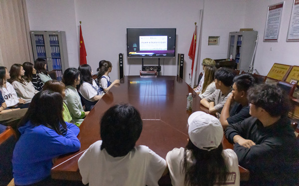 党委书记张铭、副书记肖之进、副院长彭传山以及全体辅导员带领全体师范生在艺术楼各教室集体观看,聆听韩龙的奋斗故事。