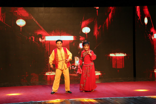“夫妻二个城门进,抬起头来看花灯……”表演者一开嗓,轻快的旋律和腔调就把观众带到了热闹的花灯会现场。安徽省黄梅戏非物质文化传承人、国家一级演员郭霄珍和其搭档国家一级演员潘文格合作表演了传统折子戏《闹花灯》。欣喜扬眉、因怒而嗔……郭霄珍用细微的肢体动作充分表达了人物内心的丰富情感。“我之前也看过《闹花灯》,但每次看都有不一样的收获,郭老师的艺术创造力很让我敬佩。”音乐学专业2017(3)班的汪珺文说,并表示在观看学习过程中,自身的专业素养也得到了提升。