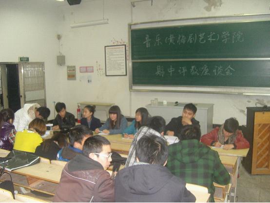 于2012年11月28日晚,在艺B107教室召开由各班班长、学习委员和学生代表参加的2012—2013学年第一学期期中评教座谈会。院学生会学习部部长喻洁主持此次座谈会。