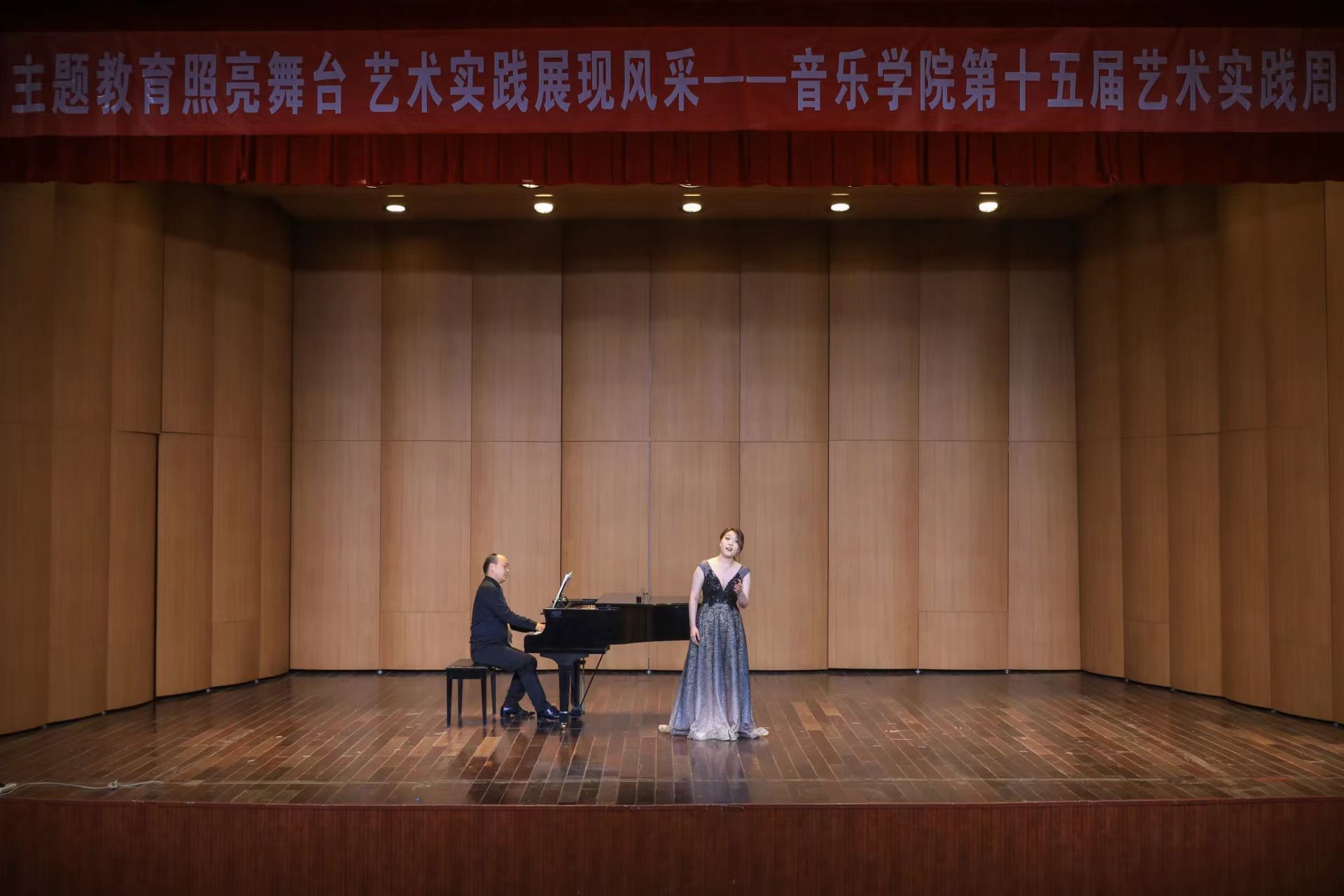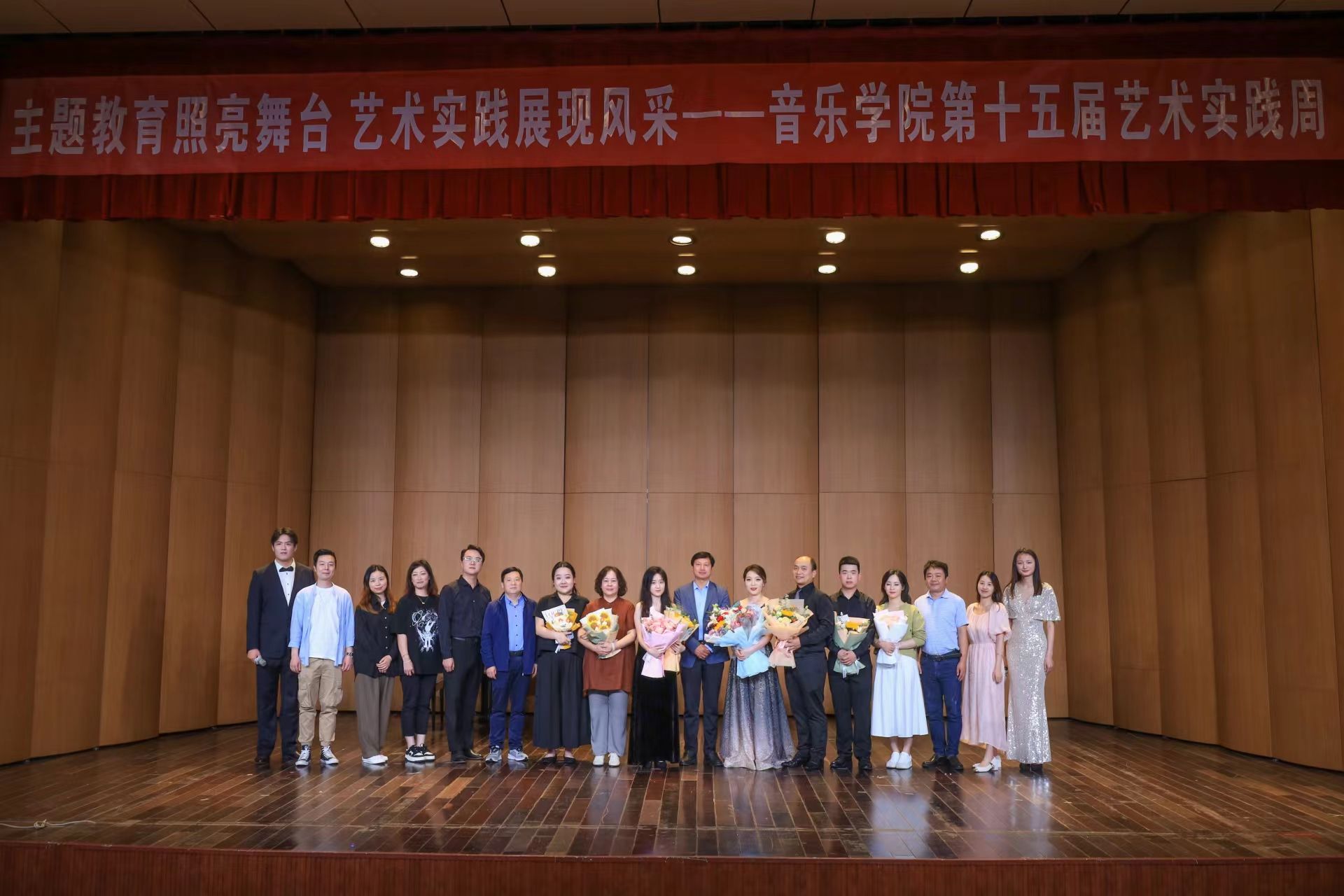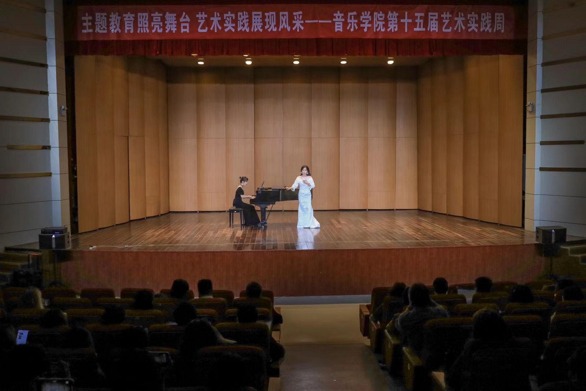 第十五届艺术实践周青年教师专场演出在音乐厅拉开序幕。学院党委书记张铭、副院长徐冉、党委副书记肖之进、副院长彭传山出席活动。9位学院青年教师登上舞台,带来示范表演,400余名学生到场观看演出,享受听觉“盛宴”