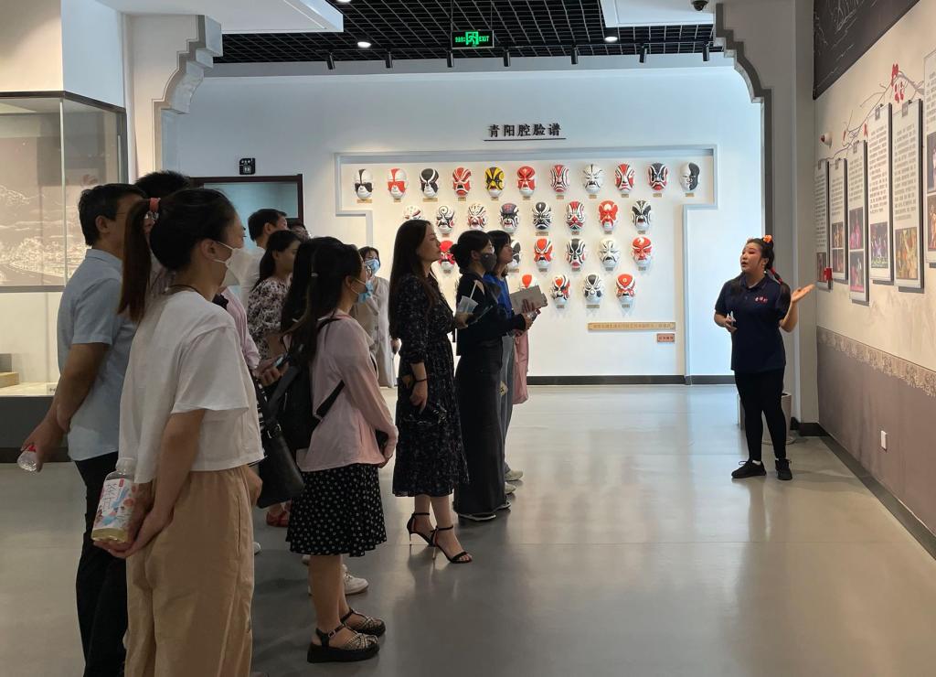 组织“国培计划(2021)”学员赴池州地区进行音乐类非物质文化遗产研修活动。院党委书记张铭,副院长、项目首席专家徐冉,副院长高艳,项目负责人彭传山,班主任孙艺铭、方尧杨与学员们共赴池州市青阳县博物馆、贵池区墩上街道罗城民歌传习基地,对首批国家级非物质文化遗产青阳腔、安徽省非物质文化遗产罗城民歌进行了实地采风与研修。