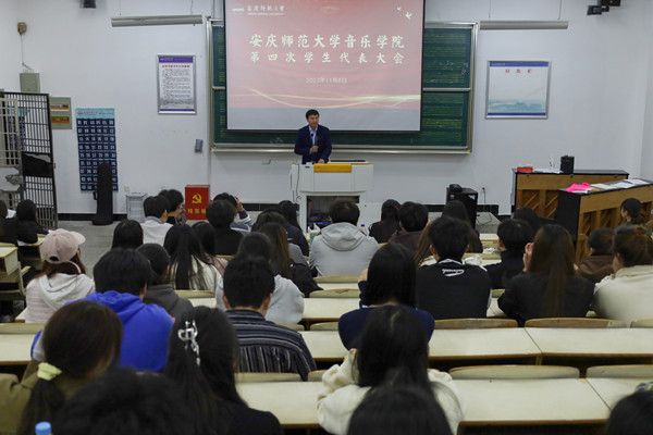 第四次学生代表大会在艺术楼B107教室召开,院党委副书记肖之进、院团委书记汪茗燕以及57名学生代表共同参加会议。
