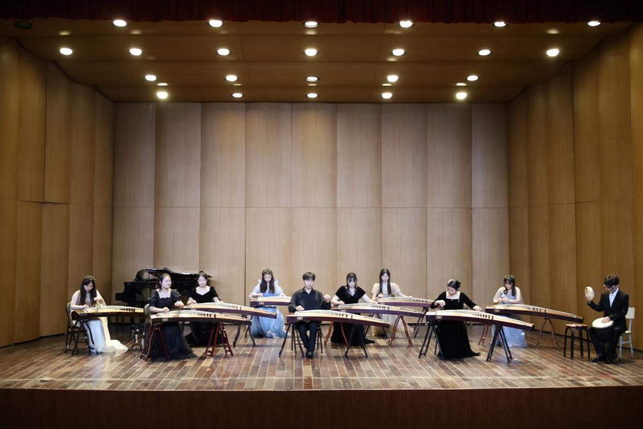 丁洁古筝教学音乐会在学校音乐厅举行,学院古筝专任老师丁洁的15位“得意门生”齐上阵,共同演绎筝曲艺术“盛宴”,展现古筝教学实践成果。学院党委书记张铭、党委副书记肖之进、副院长高艳、器乐教研室主任唐彦春出席音乐会,与近百名学生共同观看本场演出。