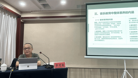 罗教授开篇立意,通过三个问题即艺术是什么、艺术教育怎么开展、为什么要开展艺术教育引入,从音乐教育中关于人的塑造、音乐教育中的智力开发与能力建构、音乐教育中整体素养的内涵和人的塑造是音乐教育的起点也是归宿这几个方面深入浅出的阐述了“音乐教育中的整体素养观”。讲座中罗教师以诙谐幽默的语言向学员们传达了音乐学科的魅力,鼓励每一位学员在音乐的熏陶中不断提升自己,丰富生活,做到在音乐学习中成长。他指出:教师只有具备理性的、科学的、严谨的治学态度,才能使音乐教育中的学习变得鲜活而灵动起来;才能使音乐教育具备真正意义上的内涵价值。