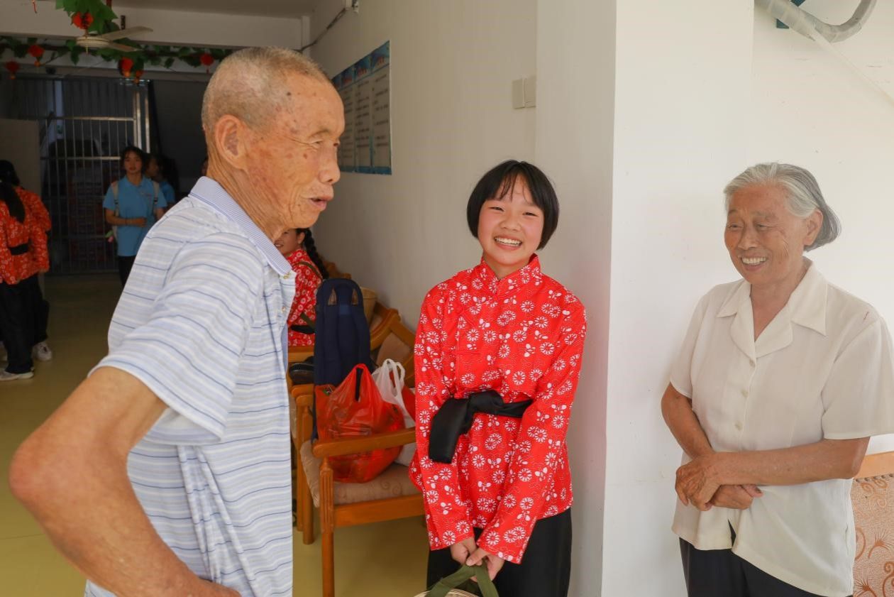 “我们听说今天有学生到这演出,就想过来看看。”郑奶奶和潘奶奶是敬老院附近的居民,得知今天有汇演,特地来到这里观看。在腊树镇敬老院,团队成员和腊树中学学生们围坐在老人身边,陪老人们讲故事、话家常。“爷爷奶奶们平时比较孤单,趁这次机会,我想陪他们多聊会天。”腊树中学学生史子昂表示,为了这次敬老院的汇演,他准备了很长时间,希望今天能把自己最好的一面展现给老人们。