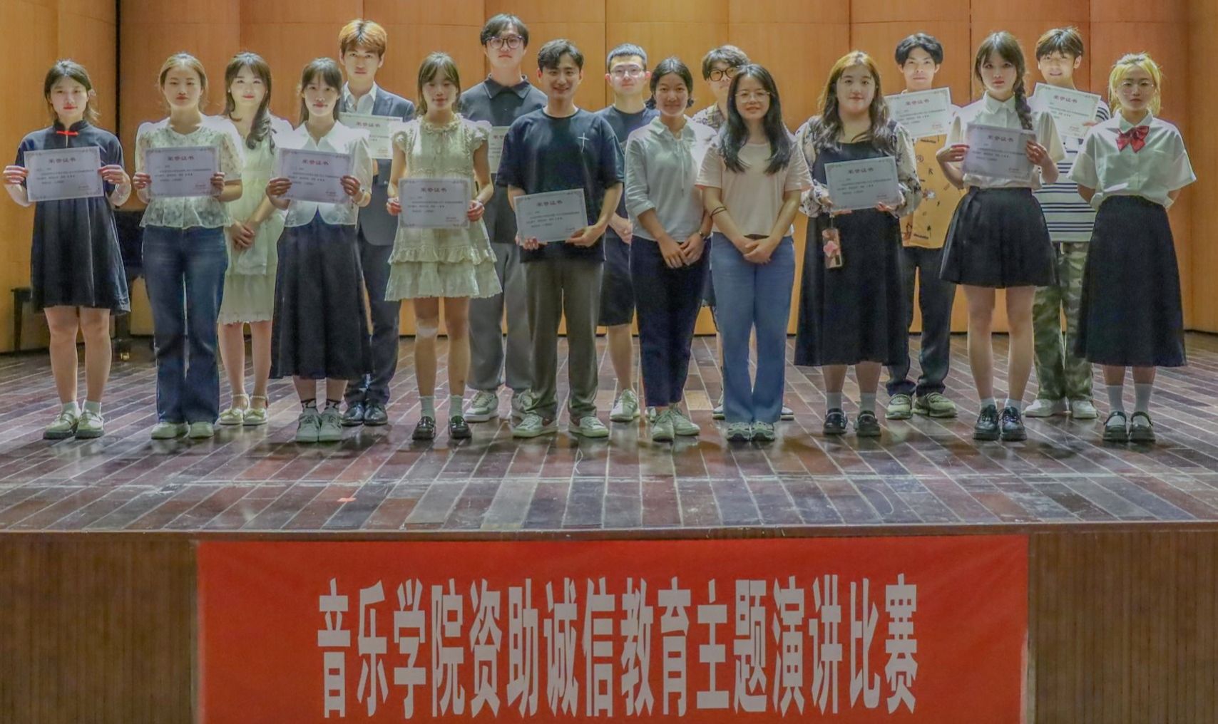 在音乐厅开展“诚信教育”主题演讲比赛,来自不同年级的11名选手齐聚一堂,各展风采。学院教师卢星、孙文和刘霜霜担任比赛评审。