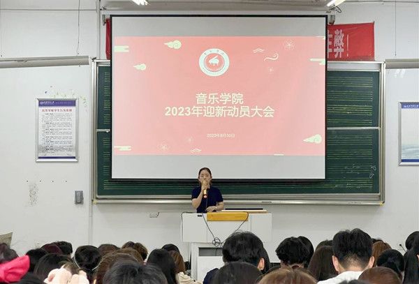 2023年迎新动员会在艺术楼B107教室召开。院团委书记汪茗燕、专职辅导员卢星、孙文出席会议,院学生会全体成员、全体迎新志愿者、新生班级助理参加本次大会。会议由杨正鹏主持。