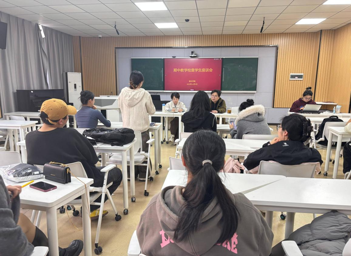 智慧教室举行了期中教学检查学生座谈会。学院副院长徐冉、党委副书记贾涛和全院不同年级不同专业的15余名本科生代表参加了座谈会,徐冉主持座谈会。