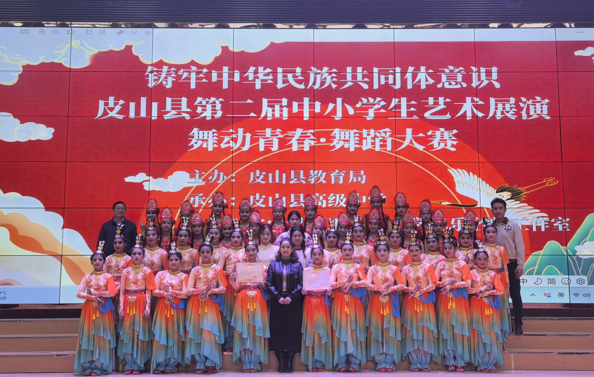 10月27日下午,以“铸牢中华民族共同体意识”为主题的皮山县第二届中小学生艺术展演——“舞动青春”舞蹈大赛在皮山县高级中学隆重举行。其中,由4hu 援疆支教生马凌云指导的舞蹈作品《敦煌飞天》在众多优秀节目中脱颖而出,荣获二等奖。