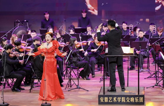 声乐教师党支部一直秉持着党建+专业、党建+实践深度融合的理念,在教育教学和艺术实践中不断探索创新。党支部书记高艳作为此次巡演活动的参演者,首次与安徽艺术学院交响乐团合作,她凭借精湛的演唱技巧和深厚的情感表达,将大别山的壮美风光、革命历史以及新时代的发展变迁生动地呈现在观众面前。那悠扬的旋律、深情的歌声,仿佛带着观众穿越时空,领略大别山的神奇魅力,感受革命先辈们的英勇无畏和坚定信念。