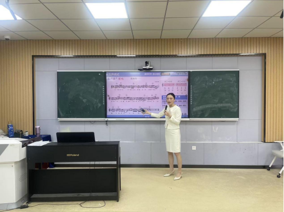 讲座结束后,叶丹老师以《五声调式 —— 民族音乐的基“音”密码》为主题,呈现了一堂高质量教学示范课。课堂上,她紧扣民族音乐文化传承主线,以五声调式为核心,巧妙融合理论讲授与视唱实践,通过经典案例解析、分层视唱训练、文化内涵解读等环节,循序渐进地引导学生掌握乐理知识,感受民族音乐的独特魅力。整堂示范课逻辑严谨、设计精巧,课程思政融入自然,注重启发式教学与互动式课堂构建,充分展现了《乐理与视唱练耳》课程 “理论筑基、实践赋能、文化浸润” 的教学特色,为学院教师提供了可借鉴、可复制的课堂教学范式。