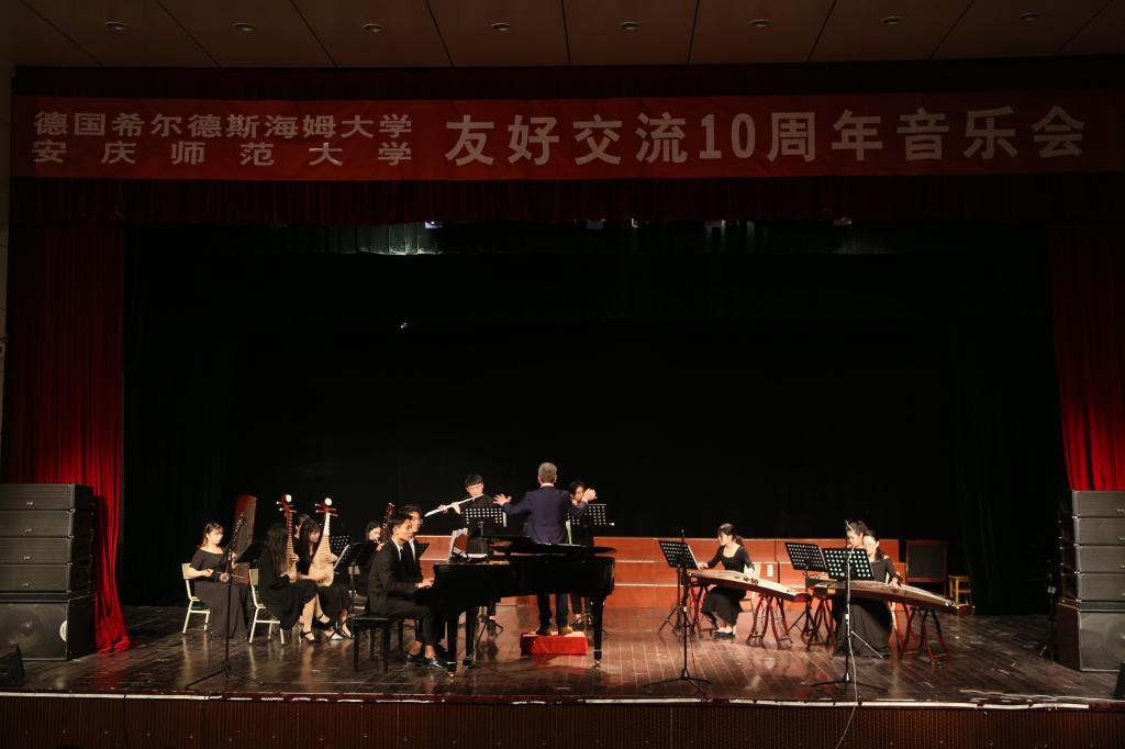 与德国希尔德斯海姆大学友好交流10周年音乐会,在龙山校区音乐厅成功举办。党委常委、教务处处长苏本跃,国际交流与合作处处长李义中、学院领导班子集体参加活动。来自德国希尔德斯海姆大学的5名音乐教师及4hu