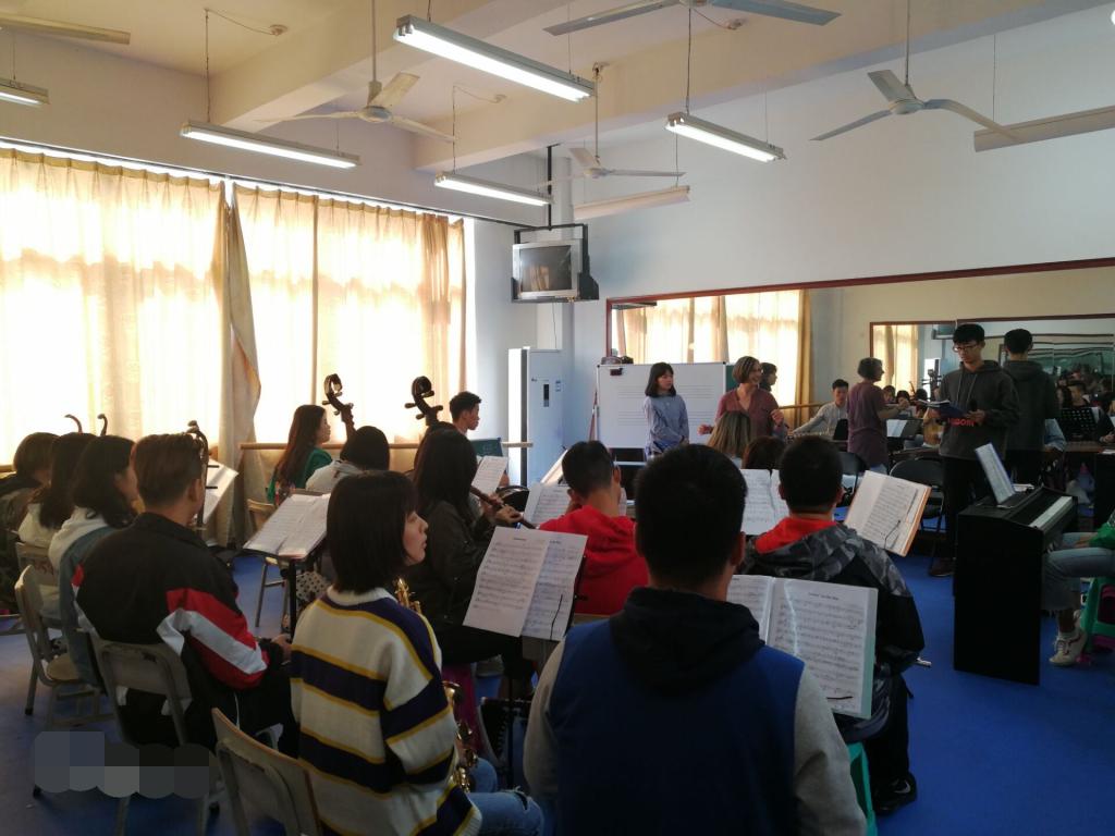 此次交流分别以办讲座、授课、合奏、亲自指导等多种形式开展。在交流中,每个老师都认真对待,亲自指导学生们的音乐作品。“为了圆满完成这次晚会,时间又紧迫,所以他们只能每天起早贪黑排练乐曲,而看到表演结束,真的由衷地敬佩他们!”音乐学2017级(2)班俞春娇说。