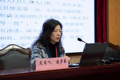 学院唐彦春副教授以《文南词非物质文化遗产传承人及地方班社访谈》为题,梳理了文南词历史沿革及其传承现状,探究了文南词曲式特征和剧目创作,思考了新传媒的介入下文南词的改革与变迁。