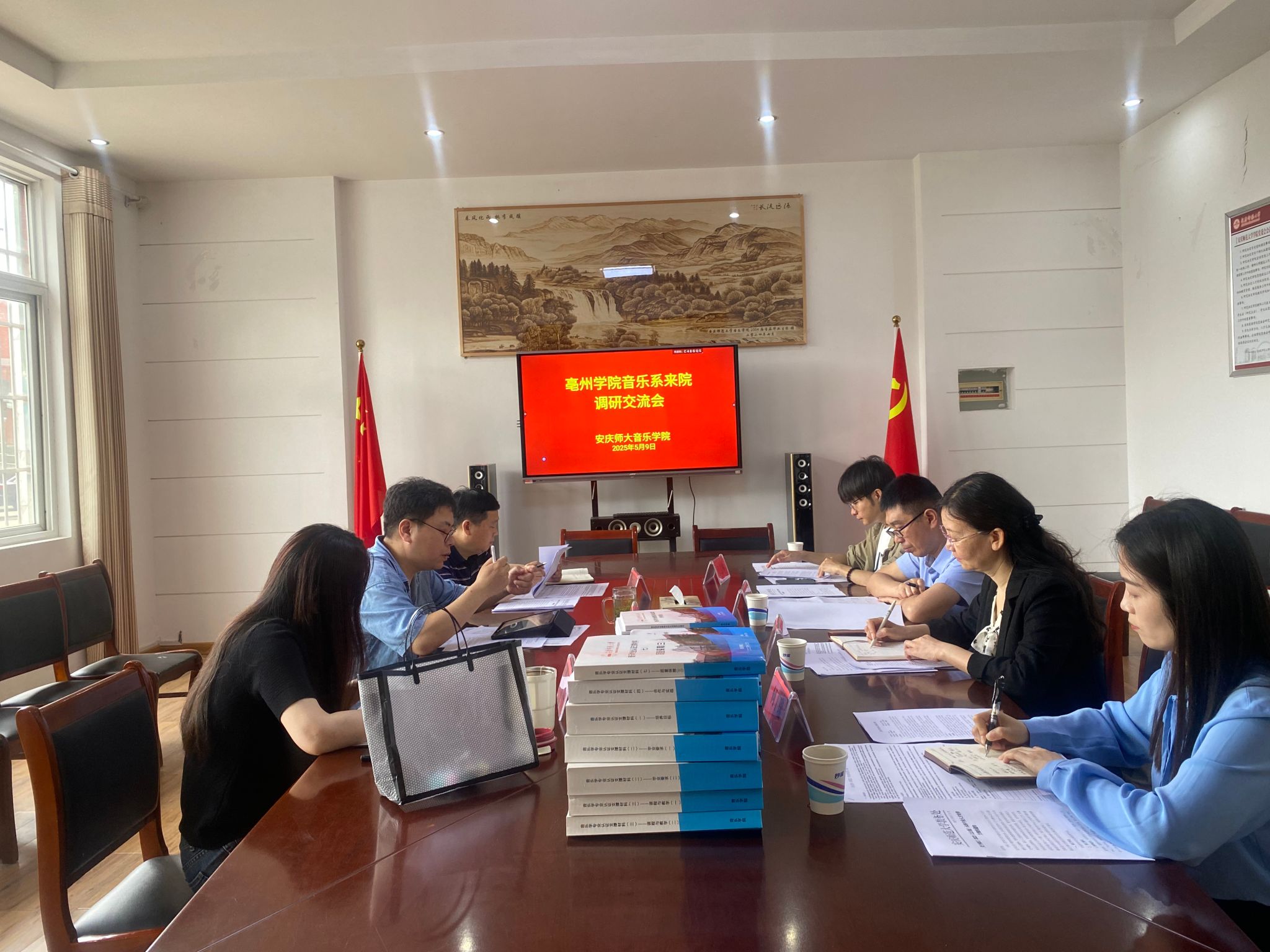 领导详细介绍了学院办学特色,重点分享了学科建设、师资培养、黄梅戏文化传承创新、民族音乐研究等领域的成果经验,展示了“以特色促发展、以实践育人才”的办学理念。亳州学院音乐系同仁对学院的热情接待表示感谢,并围绕专业建设、课程改革、艺术实践等议题展开深入探讨。双方一致认为,在应用型人才培养、横向课题合作、地域文化研究等方面具有广阔的合作空间。