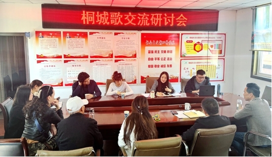 副院长高艳带领学院教师袁帆、黄佳、李宗旺一行赴桐城市文化馆,就国家级非物质文化遗产“桐城歌”进行专题调研。桐城市文化馆李毛杰书记、张馆长、汪老师以及“桐城歌”非遗传承人等参会交流。