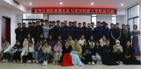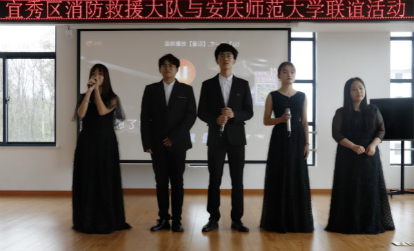 与美术学院学生在院团委副书记汪茗燕老师的带领下,来到了安庆市宜秀区消防救援大队执勤楼,开展思想政治教育基地建设活动,活动分为三部分:一是警民同台演出,二是消防知识学习,三是参观消防设施。演出现场气氛热烈,消防知识学习受益匪浅。