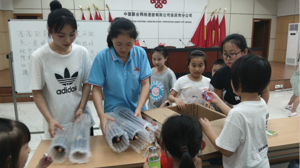 “音为爱”教育关爱实践团来到了安庆市经开区联通公司,为公司职工子女义务教授乐器、舞蹈、武术等艺术课程,并在课程结束后为孩子们别出心裁的准备了一份惊喜。