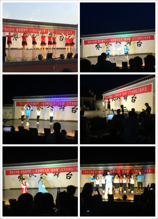 为了充分展示教学成果,实践队员在当地政府的支持下带领学生们在当地举办了一场隆重的汇报演出。本场文艺汇演由孩子和实践队员共同参与,并邀请社区居民现场观看。“鸿雁天空上,队队排成行……”实践队员张少举的一首《鸿雁》让淡淡的乡愁如鸿雁一般游荡在天空上;紧接着,孩子们开始倾情演奏他们精心准备的竖笛曲目《茉莉花》,整齐划一的节奏赢得了台下观众的热烈掌声;二胡、陶笛、舞蹈、朗诵,众多节目的演出让观众们赞不绝口,台下气氛热烈;最后,整场汇演在全体师生的合唱《让世界充满爱》中落下帷幕。