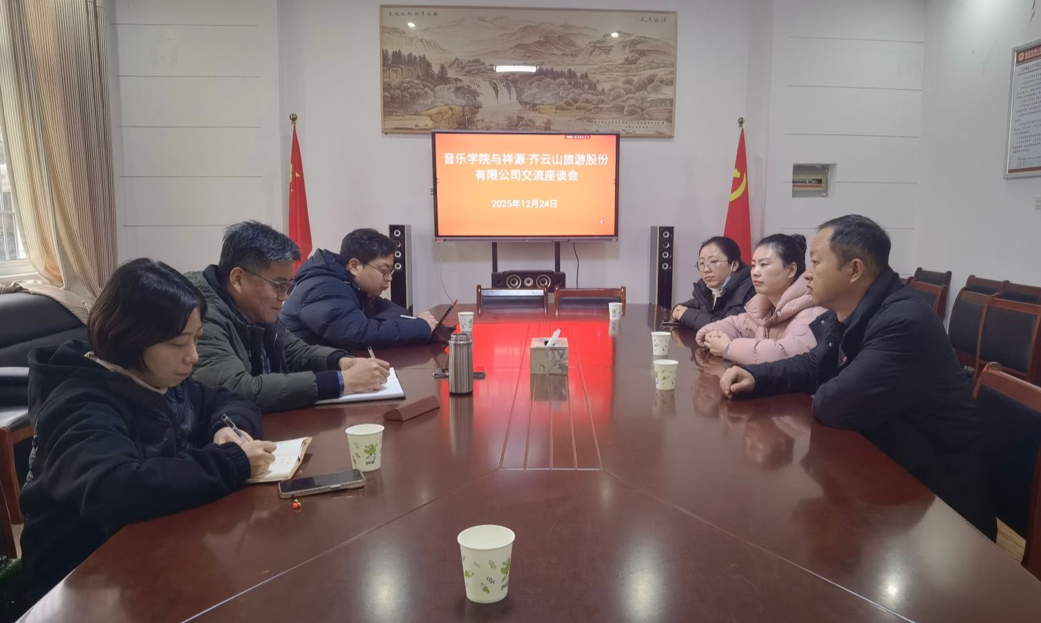 座谈会上,张铭对各企业单位长期以来对学院舞蹈专业发展的支持表示感谢,并介绍了学院舞蹈专业的办学特色、课程设置及人才培养成果。祥源·齐云山旅游股份有限公司代表详细阐述了企业目前的文旅融合项目、艺术展演规划以及对舞蹈表演、编排等方面人才的具体需求,同时对学院舞蹈专业毕业生的专业素养和实践能力给予高度评价。与会双方围绕舞蹈人才输送、实习基地建设、校企协同创作等合作方向展开了务实商讨。