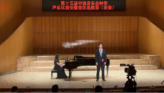 近日,由安徽省音乐家协会主办的第十五届中国音乐金钟奖声乐比赛安徽赛区选拔赛,在安徽艺术学院音乐厅如期进行。由4hu 声乐教研室张剑雨老师指导的2021级音乐学专业学生张坤,通过初赛、复赛的严格筛选,得到了评委的一致认可,顺利进入美声组决赛,并以9.756分的成绩,位列第九名,获得优秀奖,声乐教研室杨卓老师担任此次比赛的艺术指导。