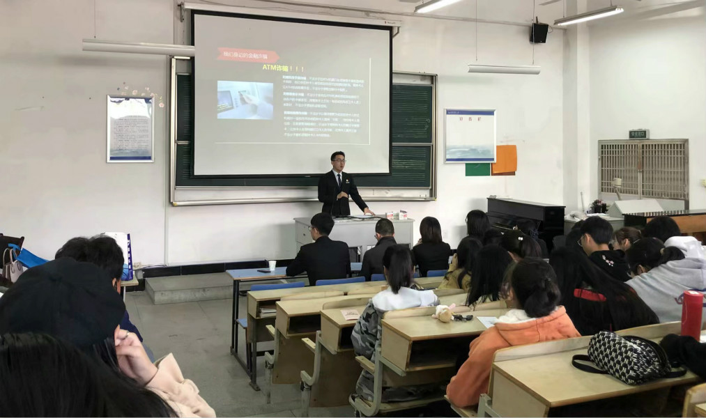 合作,为学生们开展了一场金融防诈骗讲座,2019级音乐学和舞蹈学专业全体同学在艺术楼B107教室聆听了讲座。