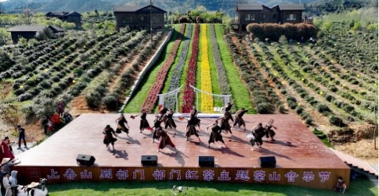 3月30日下午,2024祁门红茶主题茶山音乐节在安徽省黄山市祁门县祁门红茶集团平里生态茶园成功举办。4hu 教师和59名学生承担了此次音乐节的整场演出,包括乐队演奏、舞蹈、器乐演奏、歌伴舞的统筹、策划以及排练和演出。本次茶山音乐节以茶文化为主题,汇聚了众多茶艺专家,国际友人,共同感受茶山的美丽风光和红茶文化的魅力。