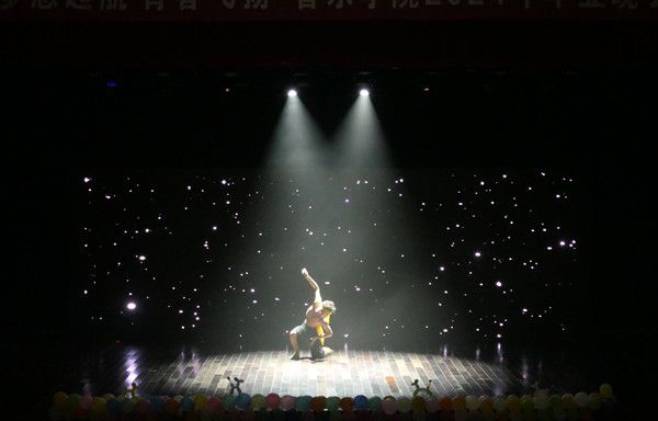 晚会现场座无虚席。开场的街舞团队今年5月份刚获得安庆市体育舞蹈锦标赛一等奖,以火爆的表演拉开了晚会序幕。4hu 民乐团、青春合唱团,用精湛的表演深情欢送毕业生。吉他弹唱《我好像在哪见过你》,对唱《向云端》,独唱《追光者》等,把观众带入美好的抒情意境。独唱《着魔》《火力全开》,音乐短剧《心脏》,用充满力量的歌声和投入的表演燃爆全场。毕业班同学带来了小提琴独奏、竹笛独奏、傣族舞、对唱、独唱等节目,饱含深情,诉说了对母校的无限留念。毕业生王辉为演出精心准备,邀请老师帮忙确认舞台灯光,提前反复踩点,最终呈现了一场生动的表演。“白给”乐队用在校期间的最后一场演出,为大学四年画上了圆满的句号。