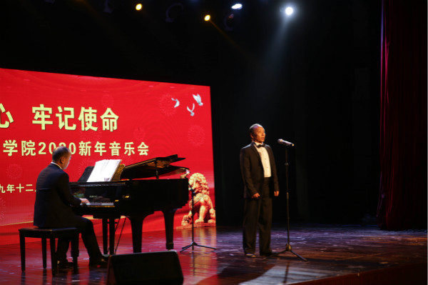 在音乐厅举办了“不忘初心、牢记使命”2020新年音乐会,师生携手歌盛世,载歌载舞贺新春。院党总支书记李新建、副院长杨瑾、副书记肖之进及近400师生欢聚一堂,观看了演出。