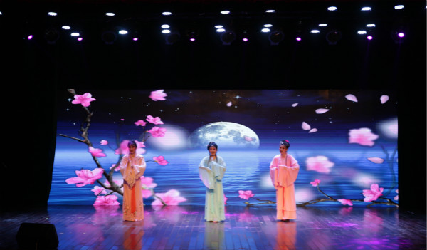“一月思念如痴如醉,相爷带得佳音归”、“休要愁眉长锁,莫把时光错过,到人间巧手同绣好山河!”,黄梅戏选段连唱《一月思念》、《杉木水桶》、《到底人间欢乐多》,以及黄梅歌《山野的风》,妆容精致、嗓音清润、表演娴熟,让大家再次品尝了精彩的黄梅风韵。钢琴独奏《狩猎》展示了音乐学专业大一新生娴熟的钢琴演奏技巧,《爱你》为大家带来了流行音乐的精彩。
