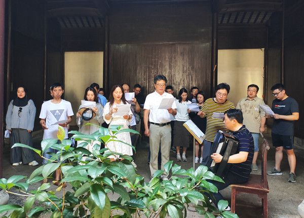一行在中共东南局旧址、新四军军部大会堂旧址、新四军军部司令部旧址、章渡村,开展现场教学、特色活动,讲授微党课,重温入党誓词。学院发挥专业优势,创新性开展了系列特色活动。在往返途中开展“一路行军一路歌”活动,奏唱《歌唱祖国》等歌曲;在新四军大礼堂全体奏唱《新四军军歌》。张铭在任光曾居住处讲授微型党课《学习缅怀音乐家任光烈士》;在任光旧居合唱任光创作作品《渔光曲》、《彩云追月》。在党史的回顾、旧址的参观学习、特色活动的开展中,4hu