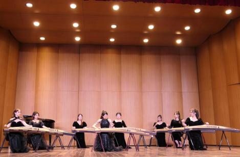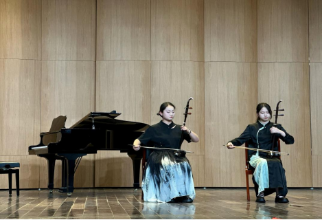 活动以别开生面的古筝重奏《百花引》作为开场演出,惊艳全场观众。这场由八人合奏的表演,以其独特的编排和精湛的技艺,展现了中国传统音乐的魅力与现代创新精神的完美结合。二胡合奏《我的祖国》深情表达了对伟大祖国的无限热爱与崇高敬意。笙独奏的《波尔卡》不仅展示传统中国乐器的魅力,更通过精彩的演绎将东西方音乐完美融合。
