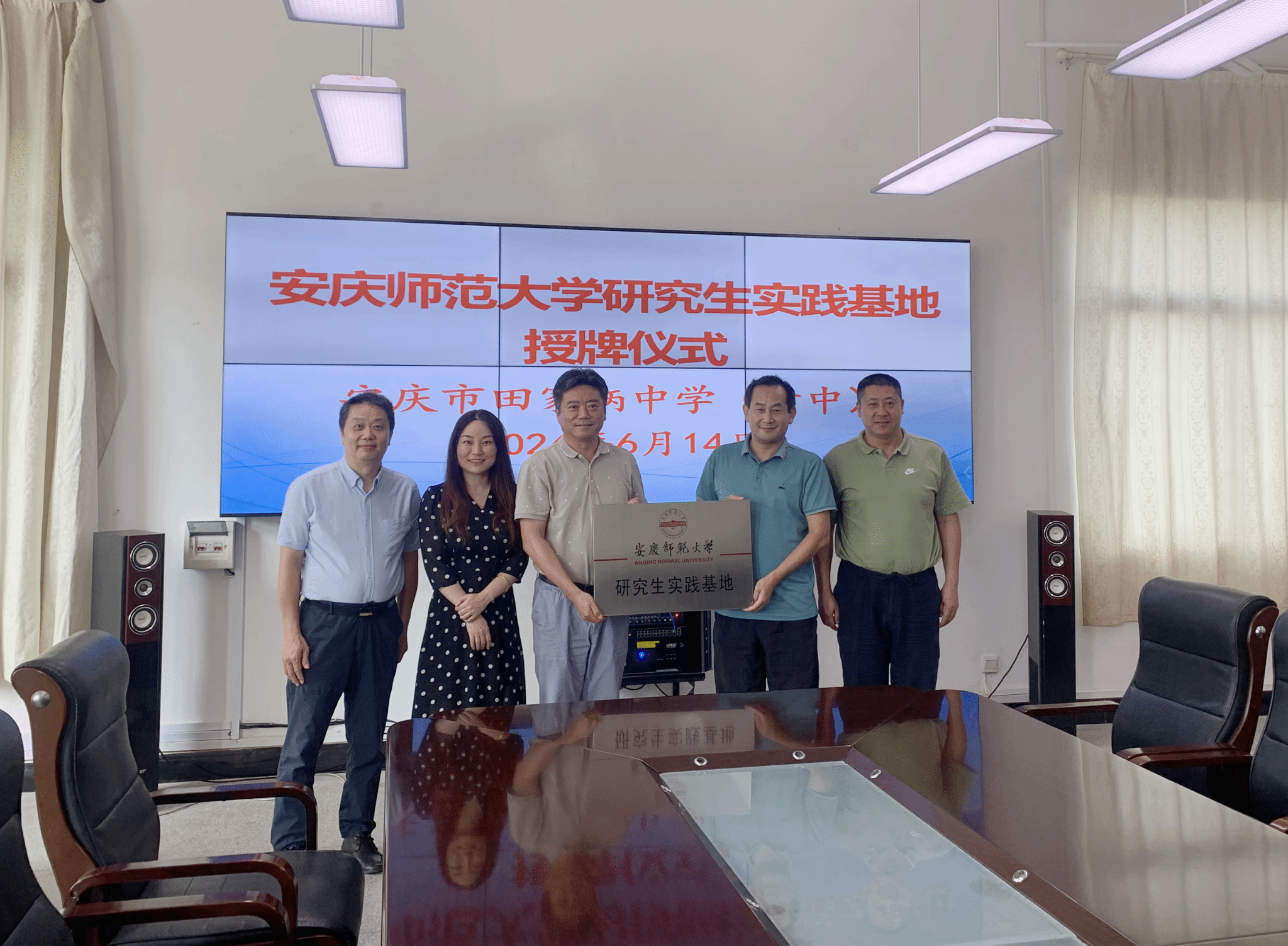 研究生实践基地”挂牌仪式。安庆市田家炳中学党总支书记、校长王小强,副校长郭斌,校外导师胡二兵以及以及学院副院长高艳等参加了活动。