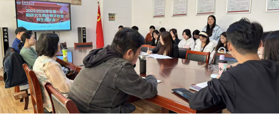 在一楼会议室隆重召开 2025—2026学年第一学期研究生中期教学检查暨师生座谈会。学院全体研究生及研究生导师参会,会议由副院长高艳主持,围绕教学检查部署、师生交流研讨等核心议题展开深入沟通。
